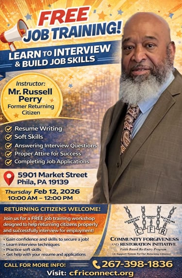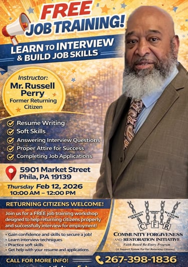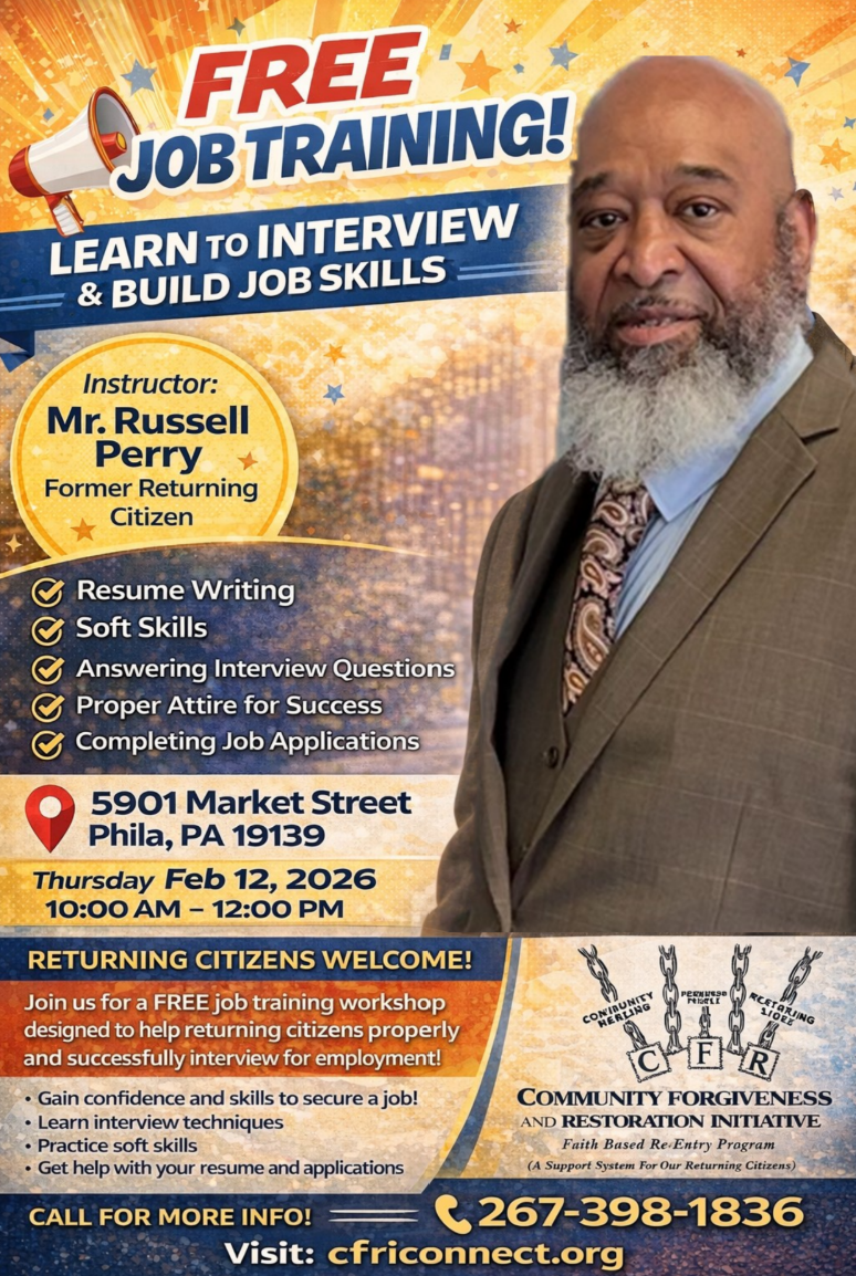 Returning citizens are welcome to join a free job training workshop designed to help participants properly and successfully interview for employment.